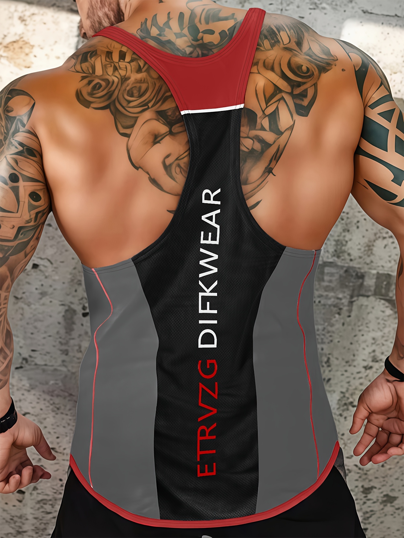 3pcs Men's Slim Fit Sleeveless Tank Tops - Breathable Summer Workout Shirts with Bold Letter Print, Lightweight Moisture-Wicking Athletic Tops for Gym, Training & Casual Wear, Gym Shirts, Gym Wear, Sporty Look, Stretchy Fabri