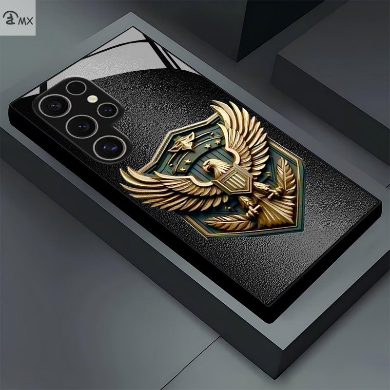 Golden Eagle Emblem Design Phone Case for Samsung S25 Ultra, S25 Plus, S25 Edge, S25, S24, S24 Plus, S24 Ultra, S24 FE, S23, S23 Ultra, S23 Plus, S23 FE, S22 Ultra, S22, S21 Pro, S20+, Note 10, Note 20, A05S, A14, A53, A35, A