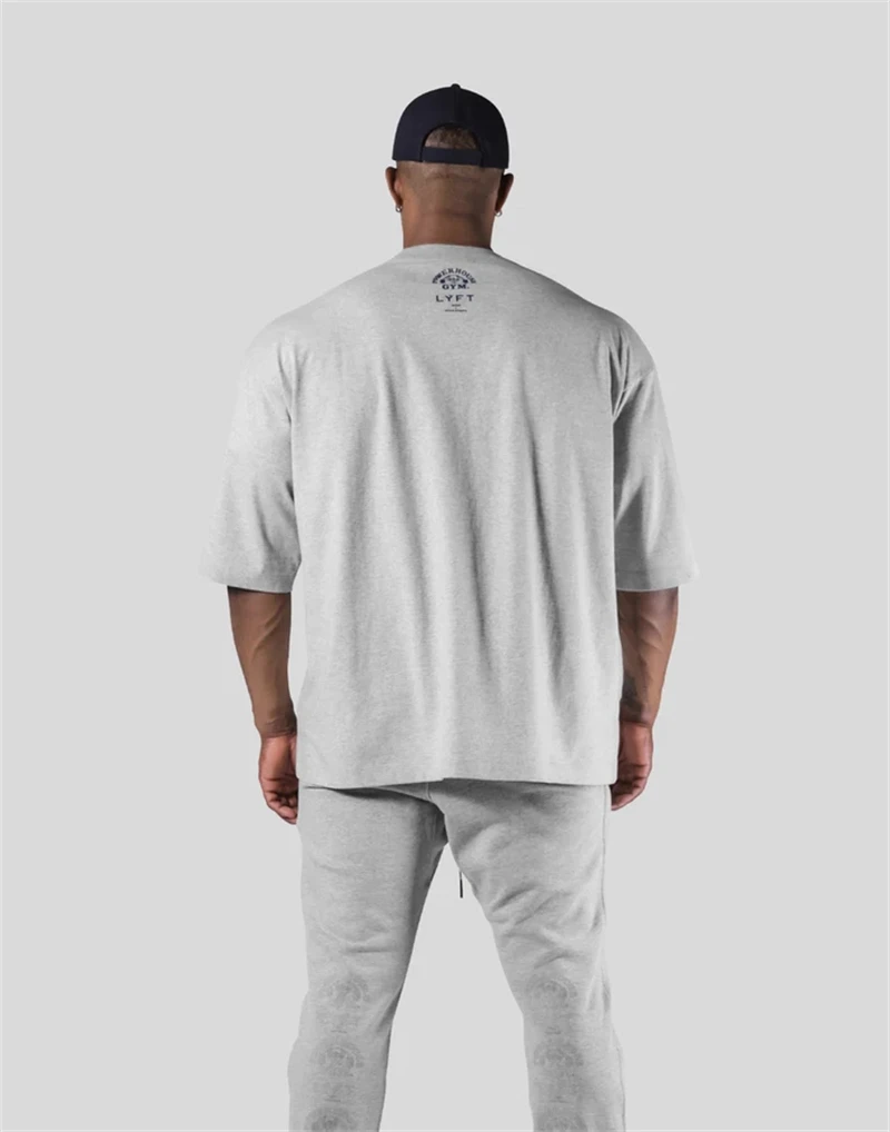 LYFT Jointly Men Running Sports Cotton T-shirt Gym Fitness Bodybuilding Loose Print Shirt Summer Male Jogging Training Tee Tops
