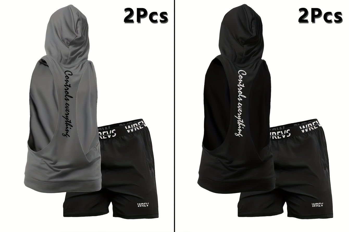 Men'S 2pcs Fitness Top And Shorts Set with a Hooded Top And Shorts, Designed for Quick-Drying And Breathability, Suitable for Training in Spring, Autumn, And Summer.